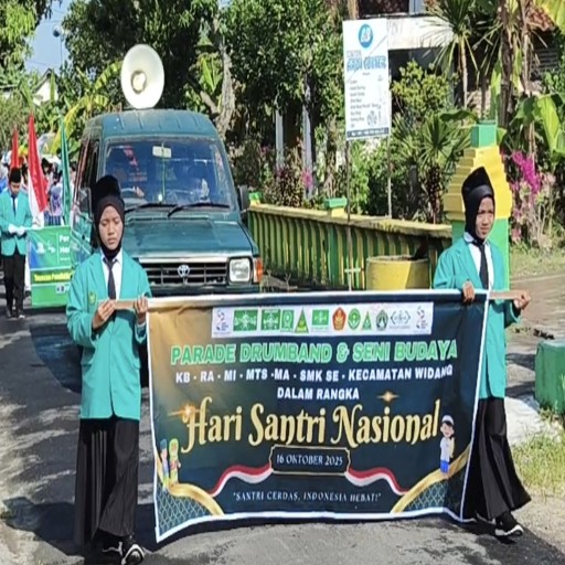 Mereka membawa bendera-bendera kecil berwarna-warni dan mengenakan seragam serba putih, simbol kesucian dan ketulusan hati santri.